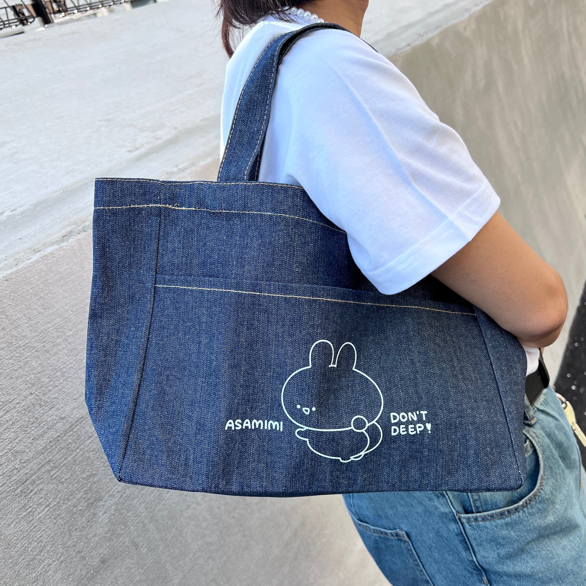 【あさみみちゃん】デニムフロントポケットトートバッグ【4月中旬発送】